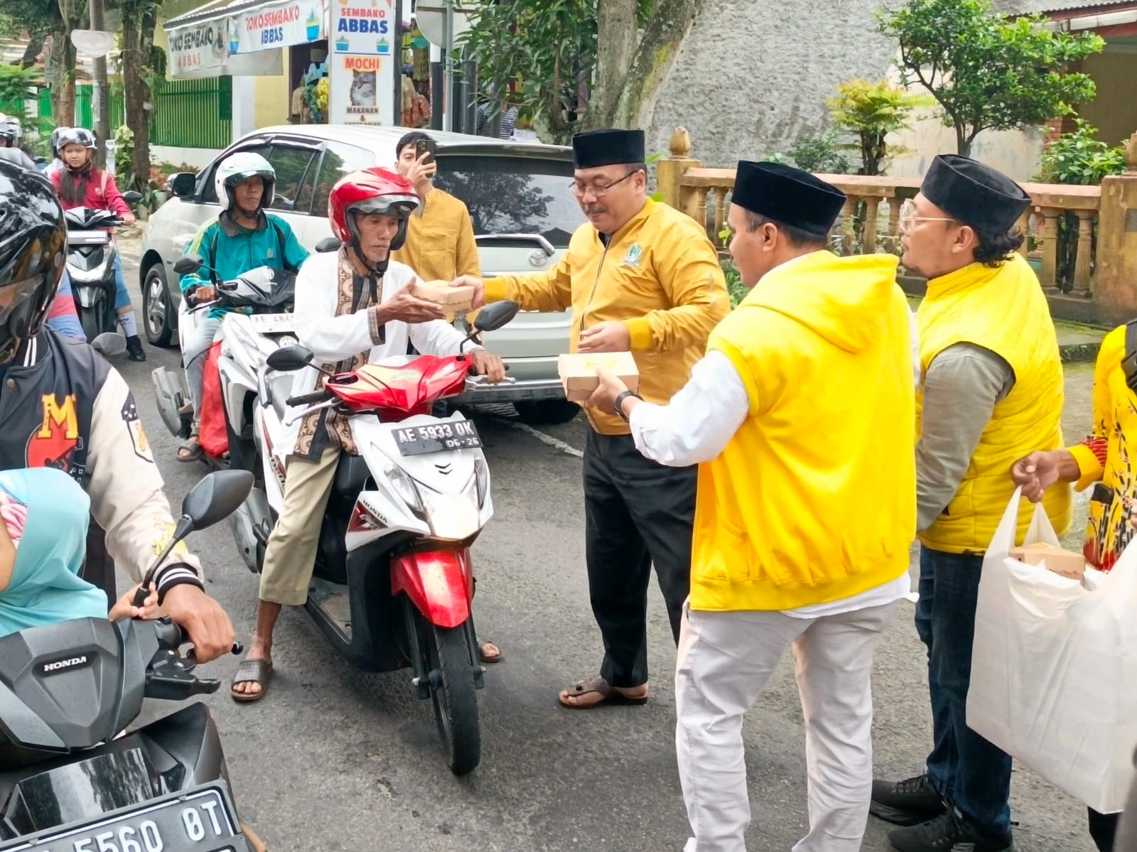 Antusiasme warga terlihat sejak sore. Banyak pengendara dengan senang hati menerima paket takjil yang dibagikan kader Golkar.