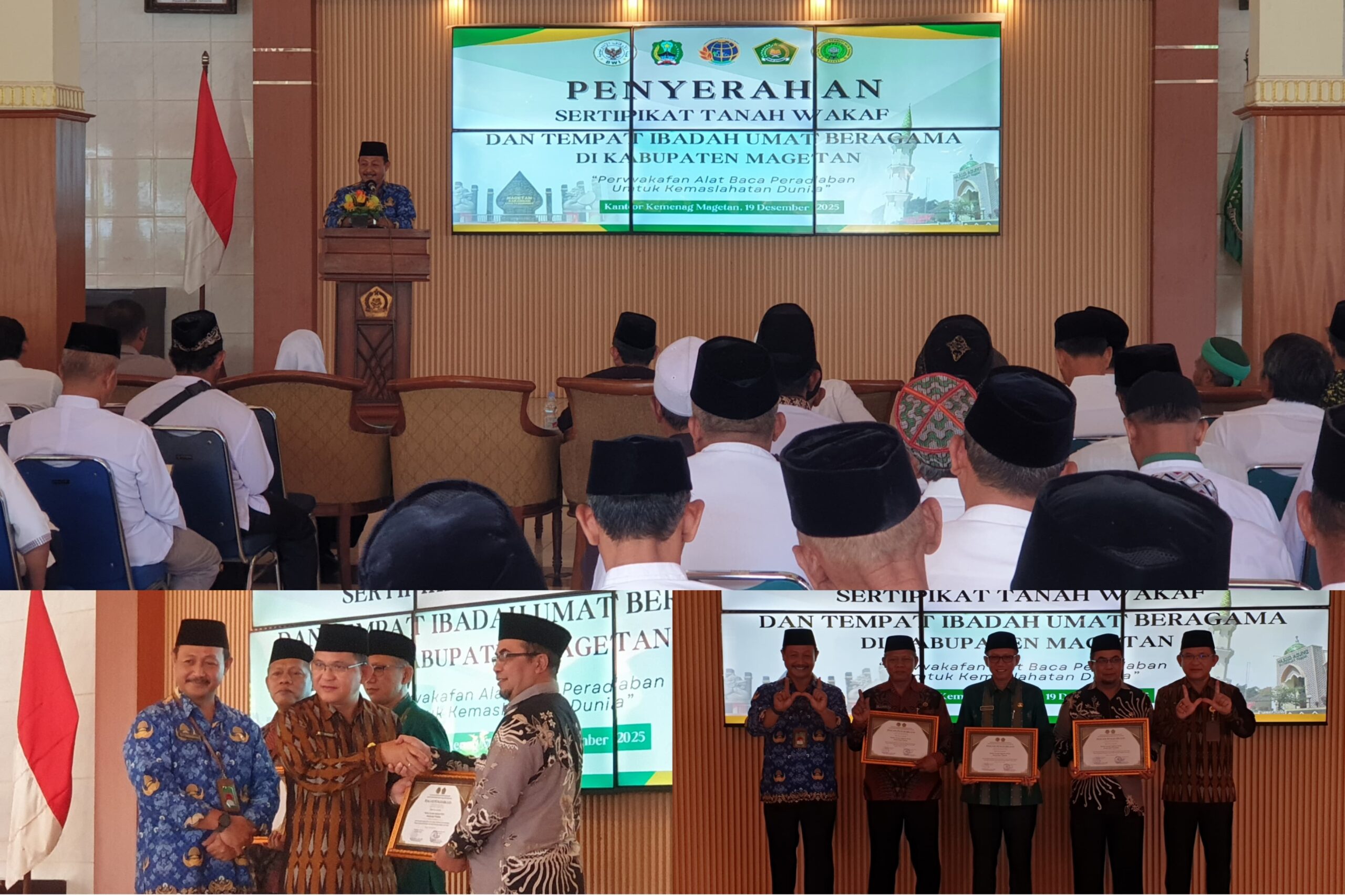 Penyerahan Sertifikat Tanah Wakaf dan Tempat Ibadah umat Beragama di Kabupaten Magetan sebanyak 302 sertifikat, yang mana 50 sertifikat sudah dibagikan secara langsung oleh Menteri ATR/BPN, Nusron Wahid bersama Gubernur Jawa Timur, Khofifah Indar Parawansa di Masjid Agung Al-Akbar Surabaya pada 13 Desember 2025 yang lalu dan hari ini sebanyak 252 sertifikat.
