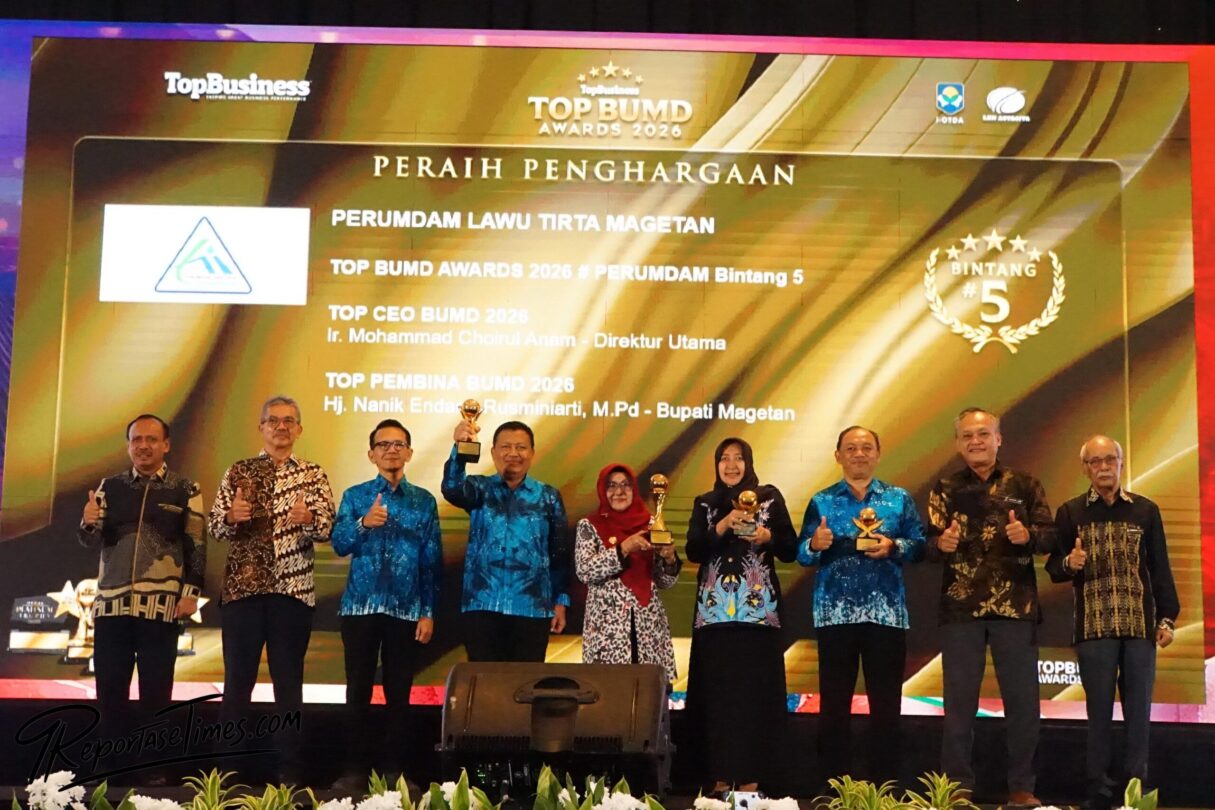 Magetan, ReportaseTimes – Badan Usaha Milik Daerah (BUMD) milik Pemerintah Kabupaten (Pemkab) Magetan kembali menorehkan prestasi di level nasional. Sejumlah penghargaan berhasil diraih dalam ajang Top BUMD Awards 2026 yang digelar di Dian Ballroom Lt. 11, Hotel Raffles Jakarta, Ciputra World, Senin (13/4/2026).