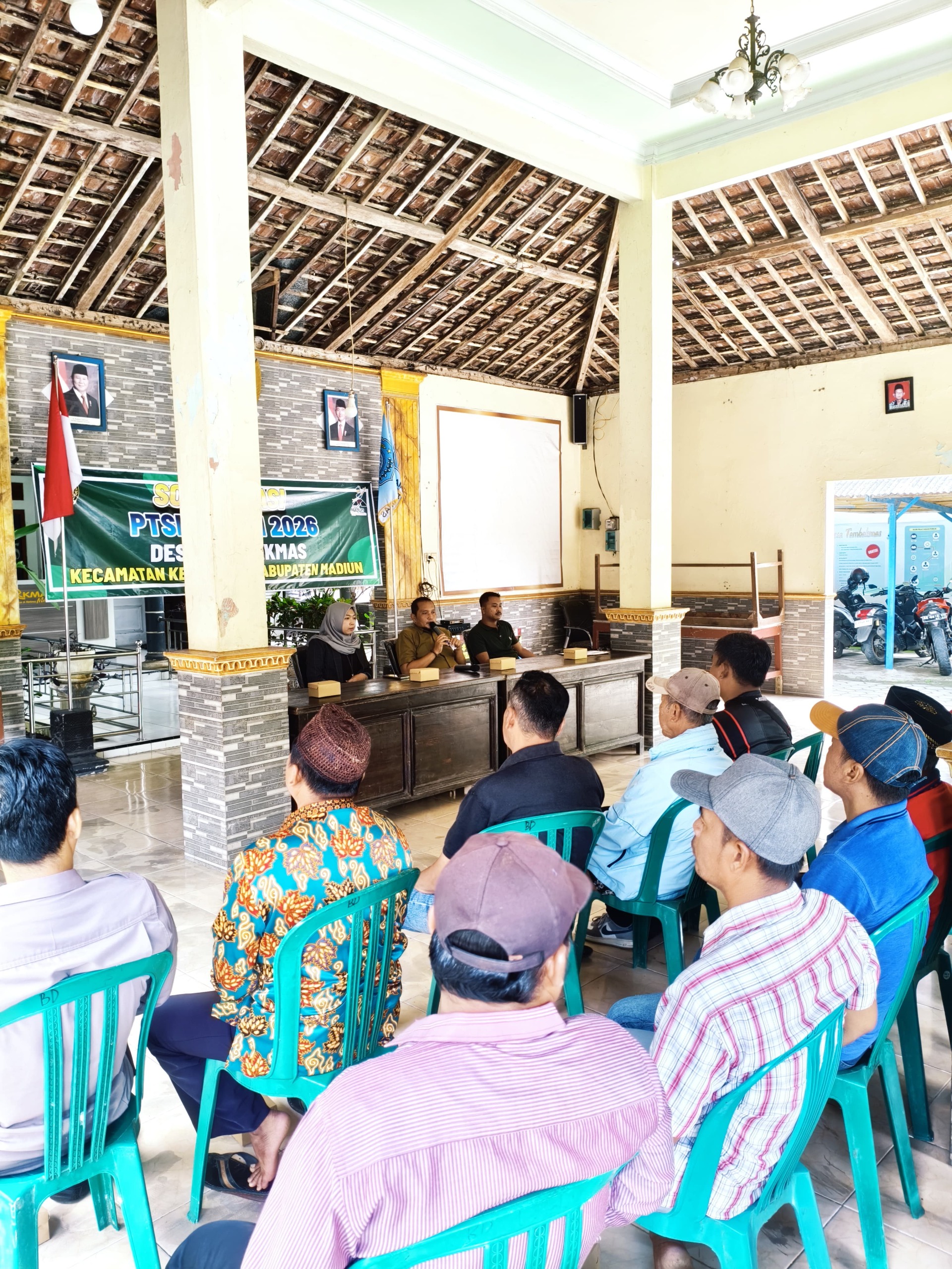 Madiun, ReportaseTimes – Kantor Pertanahan Kabupaten Madiun turunkan Tim PTSL (Pendaftaran Tanah Sistematis Lengkap) untuk mensosialisasikan Program PTSL yang bertempat di Balai Tambakmas, Kecamatan Kebonsari, Kabupaten Madiun, Jawa Timur, Jumat (6/2/2026).