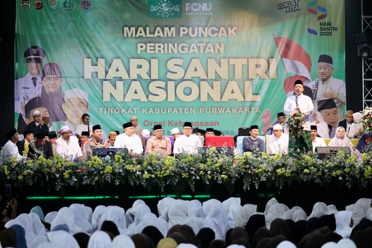 Hal itu disampaikan dalam orasi kebangsaannya pada peringatan Hari Santri Nasional di Kabupaten Purwakarta, Sabtu (25/10/2025) malam, yang dihadiri para kiai, santri, dan tokoh masyarakat.