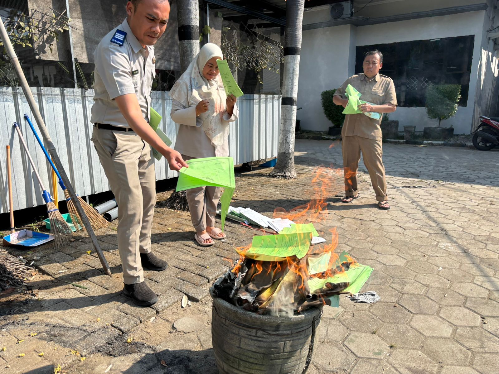 Kegiatan pemusnahan disaksikan oleh pejabat struktural dan pelaksana di lingkungan Kantor Pertanahan Kabupaten Madiun, serta dilaksanakan dengan prosedur yang aman dan transparan.
