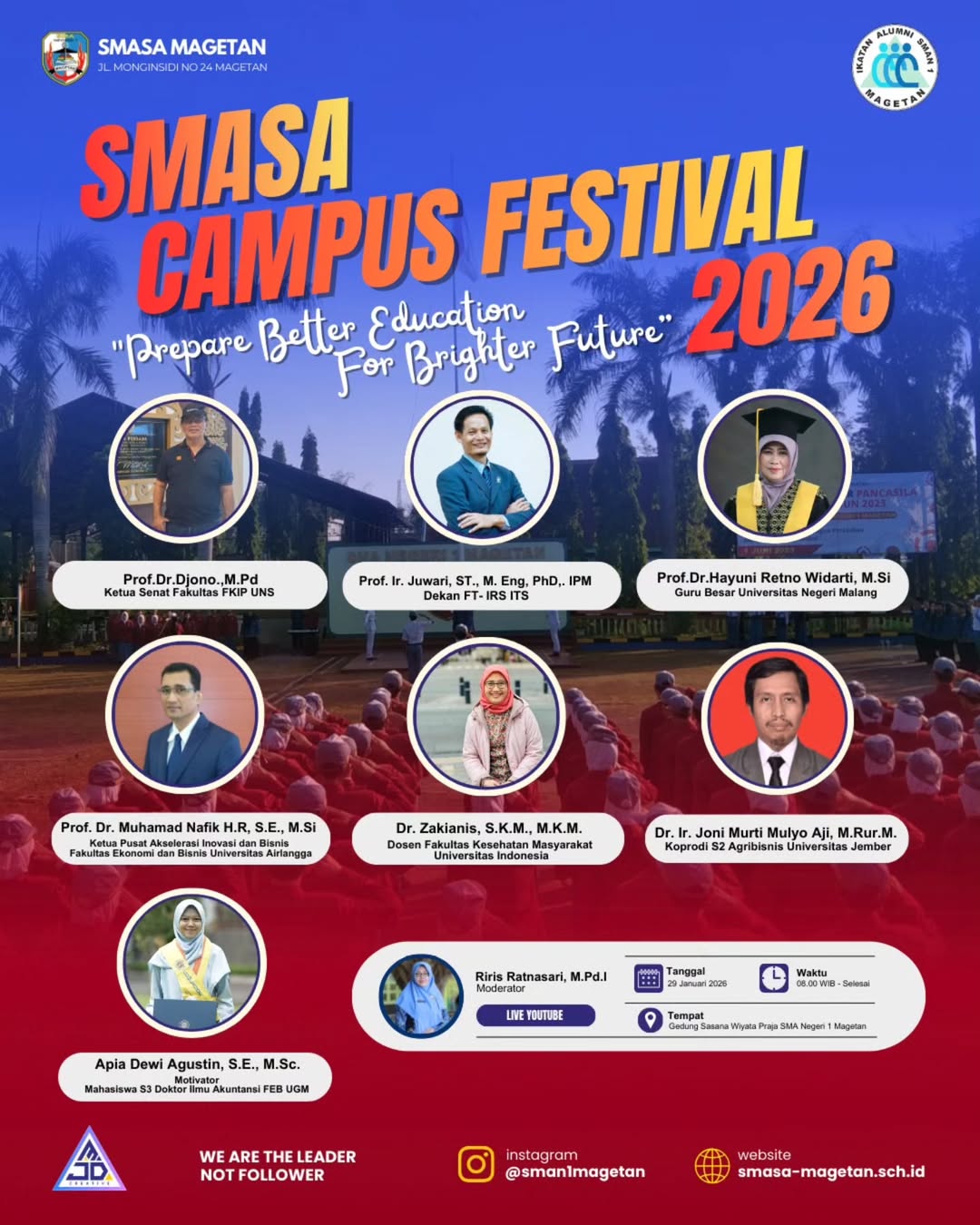 SMASA Campus Festival Tahun 2026 kali ini berkolaborasi dengan Ikatan Alumni SMASA yang turut menghadirkan para alumni kebanggaan sebagai narasumber dalam SCF Tahun 2026, yang diikuti seluruh siswa-siswi kelas XII SMA Negeri 1 Magetan.