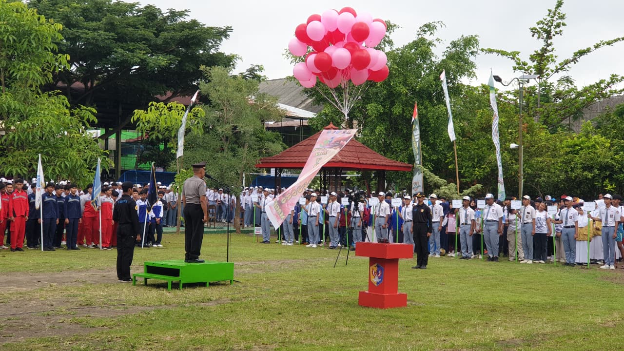 Mewakili Kapolres Magetan, Kasat Binmas Polres Magetan memimpin upacara peringatan HUT SMK Yosonegoro Magetan ke-34.